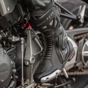 Bota de cano longo feita em microfibra de alta qualidade com áreas perfuradas para ventilação;