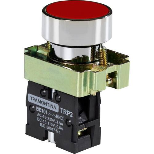 Botão De Impulso Tramontina Trp2-ba41 1na Vermelho Com Base De Metal Botão de Impulso Tramontina TRP2-BA41 1NA Vermelho com Base de Metal O Botão de Impulso Tramontina proporciona maior segurança no controle de máquinas e circuitos elétricos. A cor vermelha no botão sinaliza parar/desligar um comando.