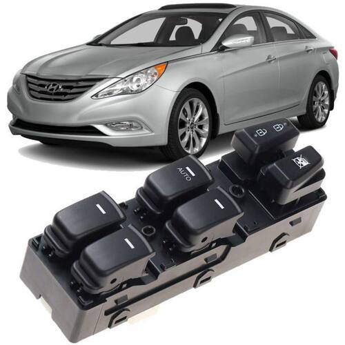Comando Botão Vidro Eletrico Cor: Preto , tecla com Auto na porta dianteira esquerda Posição : Porta dianteira Esquerda Motorista Aplicação: Hyundai Sonata 2.4 16v - 2011, 2012, 2013, 2014, 2015 Conector: 16 Pinos Código : 935703s000RY / 93570-3s000RY Peça nova, importada, à de 3 meses Marca: Não Informado
