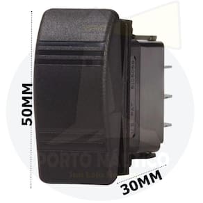 Botão em plástico preto on-off-on 3 pinos O botão de painel com função liga / desliga para uso náutico produzido em plástico resistente as adversidades do ambiente marinho. É utilizado para ligar e desligar equipamentos náuticos com até 20 amperes de corrente. Itens adicionais 12v 20a - 24v 10a; Amperagem: 20a Dimensões: 30mm x 50mm Botão de controle: liga - desliga momentâneo Material de alta qualidade Itens inclusos 01 botão em plástico preto on-off-on 3 pinos Porto náutico - sua loja náutica Marca: Não Informado