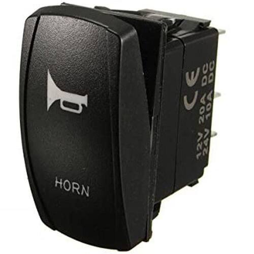 Interrupuptor para acionamento de buzina Interruptor mometâneo para acionamento de buzina elétrica. Modelo universal com indicador de buzina e led indicador. Acopla em todos os tipos de buzina, ligação em 12 e 24v, função on e neutro. Para funcionamento é necessário pressionar o interruptor.