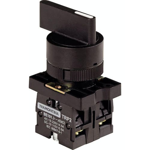 O Botão Seletor Tramontina possibilita sua aplicação nas mais diversas funções, como: ligar/desligar, habilitar/desabilitar, reversão de motores, entre outras. Orientações . Características Gerais EAN13 7891435936001 DUN14 17891435936008 NCM 8536.50.90 Peso Líquido 0,0523 kg. Peso Bruto 0,0583 kg. Dimensões Produto (Compr. X Larg. X Alt.) 40x 30x 70 mm. Cor 1 0000000 Hexa Observações Recomenda-se a instalação por pessoal capacitado, seguindo todas medidas de segurança em instalações elétricas.