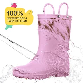 HISEA Botas de chuva infantis para meninos e meninas, botas de borracha à prova d'água com alças fáceis de colocar, botas de chuva de PVC sem costura, sapatos de lama leves para brincar ao ar livre - À prova d'água e sem costura – o material de PVC e a estrutura sem costura evitam rasgos e vazamentos, garante que a água não penetre nas botas. O forro sintético macio absorve a umidade e seca rapidamente. O design até o meio da panturrilha mantém os pés secos e quentes depois de brincar o dia todo na chuva, riachos, poças e jardim onde quer que fique lamacento. - Alça fácil de colocar – Duas alças resistentes na parte superior para facilitar o transporte e o armazenamento suspenso, facilitam para seus filhos puxarem e tirarem sozinhos. O formato bonito dos dedos redondos oferece espaço suficiente para os pés das crianças, pode ser dobrado de forma flexível, garantindo um ajuste confortável e seguro. Palmilha acolchoada e PVC flexível oferecem maior conforto e suporte. - Antiderrapante e seguro – Solas antiderrapantes duráveis fornecem forte tração e boa aderência em solo molhado, garantem a segurança das crianças quando elas estão correndo, pulando e pisando em dias chuvosos. O revestimento de borracha reforçada adiciona proteção adicional ao dedo do pé e calcanhar. Livre de produtos químicos e materiais nocivos, tornando-os mais seguros para as crianças usarem. - FÁCIL DE LIMPAR - O exterior elegante protege as botas de chuva infantis de manchas e sujeira sem se preocupar com a limpeza fatigante, basta borrifar a lama sob a mangueira ou torneira e elas estarão prontas para a próxima aventura. Adequado para muitas atividades ao ar livre, como acampamento, trilhas lamacentas, escalada, caminhadas, jardinagem, brincadeiras em riachos. - Botas de chuva para todas as estações – as botas de chuva infantis HISEA estão disponíveis em cores populares para meninos e meninas, garantindo uma combinação perfeita com sua personalidade e estilo. Pode ser utilizado em todas as estações e permite que as crianças explorem o ar livre mais livremente e liberem sua inocência infantil, protegendo-as totalmente em estações lamacentas e dias chuvosos. - Problema de tamanho e uso a longo prazo – Leia a tabela de tamanhos e escolha o tamanho certo antes de comprar! À medida que os pés das crianças crescem rapidamente, recomenda-se comprar botas de chuva com tamanho ligeiramente maior. Adicionar uma palmilha extra pode aumentar o conforto a curto prazo e permitir que eles usem as botas de chuva por um longo período.