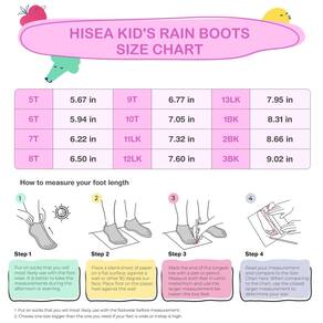 - BOTAS DE CHUVA PARA TODAS AS ESTAÇÕES — As botas de chuva infantis HISEA estão disponíveis em cores populares para meninos e meninas, garantindo uma combinação perfeita com sua personalidade e estilo. Ele pode ser utilizado em todas as estações e permite que as crianças explorem o ar livre com mais liberdade e liberem sua inocência infantil, protegendo-as totalmente em estações lamacentas e dias chuvosos.