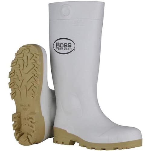 Botas lisas unissex de PVC BOSS brancas, 12 EUA, impermeáveis, 1 par de 16 polegadas.