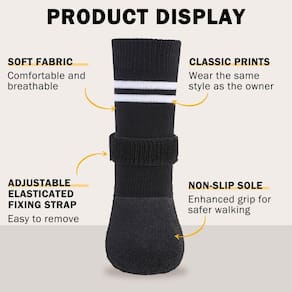 Feitas de material impermeável, estas meias para cães à prova d'água não são apenas superconfortáveis, mas as patas do seu cão não serão capazes de rasgar através delas. As solas antiderrapantes proporcionam aderência fantástica em quase qualquer superfície e flexibilidade incomparável. Molhado, seco, quente ou frio, em ambientes internos e externos. Nossas meias impermeáveis para cães são feitas com um design estendido para envolver as pernas do seu cão. E para aquecimento extra em invernos frios, o tecido é muito mais espesso do que as meias normais. O design esportivo de listras duplas faz com que seu cão pareça um atleta com nossas meias de pata de cachorro. Saia em público com seu cachorro, sua aparência bonita e alegre certamente atrairá a atenção. As meias antiderrapantes para cães vêm em quatro cores e quatro tamanhos, com preto suave para cães mais velhos, cáqui brilhante para filhotes, rosa doce para fêmeas e cinza cavalheiro para machos. Dê uma olhada rápida em nossas meias para cães, seja seu cão pequeno, médio ou grande, seja menino ou menina, você certamente encontrará as meias certas para isso. - Tamanho G: Largura da pata 5,5 cm, comprimento da pata 6 cm, comprimento da meia 18 cm. Meça de acordo com nossa tabela de tamanhos antes de comprar. As patas dianteiras e traseiras dos cães geralmente têm tamanhos diferentes, meça os pés dianteiros e traseiros antes de comprar e compre de acordo com nossa tabela de tamanhos - Meias impermeáveis para cães: as meias para cães são feitas de tecido de algodão macio e aconchegante, usando as meias, os pés do seu cão são instantaneamente envolvidos em calor. O material do piso torna as meias à prova d'água e mantém os pés secos, perfeitas para todas as estações em ambientes internos ou para curtos períodos de exercício ao ar livre - Parte inferior antiderrapante: os sapatos de neve para cães são projetados com borracha plissada e mergulhada para proporcionar boa tração e evitar que seu cão caia e escorregue em pisos escorregadios, como azulejos ou pisos de madeira - Antiqueda: O cinto ajustável e removível garante que as meias aderentes para cães não caiam. Aperte os laços elásticos pretos para um ajuste perfeito. Não aperte com muita força para garantir que seu cão fique confortável e seguro enquanto estiver em movimento - Multifuncional: estas meias para cães protegem móveis como pisos de madeira, mesas de madeira e sofás de arranhões. Elas também fornecem proteção essencial para as patas do seu animal de estimação contra patas frias e doloridas. Eles também são ideais para animais de estimação mais velhos e também evitam que rasgos de patas, cortes ou feridas sejam lambidos por animais de estimação