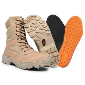 Botas Taticas Infantaria em Couro Coturno Militar PM com Palmilha de Gel Bico PVC - 43 - Bege