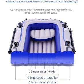 Feito em PVC super resistente, o bote aguenta até 168kg, comportando confortavelmente 2 pessoas. Seus compartimentos principais garantem estabilidade e segurança durante todo o passeio!