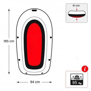 * Dimensões: Medindo aproximadamente 185 cm de comprimento, 94 cm de largura e 41 cm de altura quando totalmente inflado, oferece um espaço confortável para seus ocupantes.