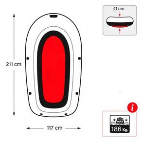 - Confeccionado com PVC Pneumático de alta resistência. - Duas Câmaras De Ar Com Válvulas Duplas. - Válvula com película para retenção do ar estampada com tinta não tóxica. - Possui válvula de segurança e válvula de esvaziamento. - Capacidade máxima recomendada: 186 kg. Recomendado para maiores de 6 anos. - Dimensões: 211 cm x 117 cm x 41 cm