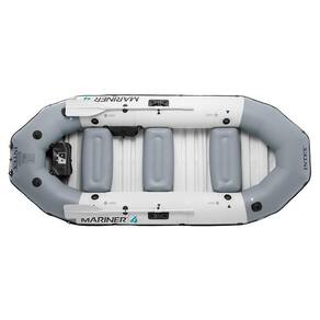 O Bote Inflável Mariner 4 Intex é um bote profissional que aceita motorização de até 3hp, instalado com suporte (vendido separadamente). Suporta até 500kg. Possui quilha central, suporte para remos giratórios (já incluídos) e acentos removíveis. O piso do Bote Mariner é de PVC rígido, revestido de vinil formando um estrado para pisar sem danificar o bote. Este barco foi projetado para 4 pessoas de até 100kg cada, acomodando-se com segurança. É um excelente produto para usar em lagoas, mares, rios e represas. De fácil transporte, pode ser levado no porta-malas do carro.