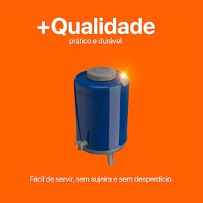 Capacidade de 10 litros Fabricado em polipropileno de alta resistência Cor azul com acabamento fosco moderno Tampa rosqueável com vedação segura Torneira prática para servir com controle de fluxo Pés integrados que garantem firmeza e elevação da base Ideal para eventos, escritórios, refeitórios, comércios e uso doméstico