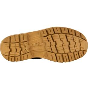 - Solado: PU bidensidade (0,35 g/cm³ conforto + 0,47 g/cm³ abrasão) injetado ao cabedal.