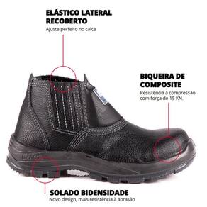 Prolight: biqueira formada por compostos plásticos de alto desempenho. Prp: palmilha de montagem resistente à perfuração. Dorso acolchoado: maior conforto para os pés. Sobrepalmilha em eva: excelente memória e espessura, trazendo conforto aos pés. Solado bidensidade: resistência à abrasão e conforto. Elástico lateral recoberto: maior praticidade e segurança. Ca 42330 Número do calçado: 40
