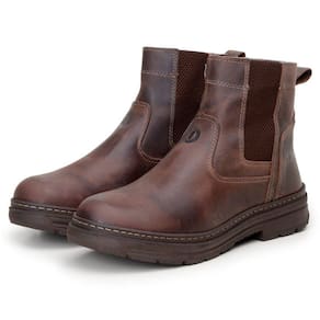 Botina Chelsea Masculina Couro Forro Tecido Algodão Palmilha EVA Solado Borracha Rural Agro - 39 - Marrom