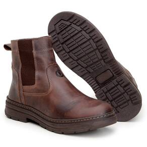 Botina Chelsea Masculina Couro Forro Tecido Algodão Palmilha EVA Solado Borracha Rural Agro - 44 - Marrom