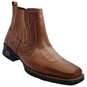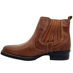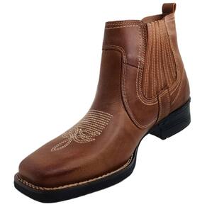Botina Country Masculina Texana em Couro com Costura Bico Quadrado Cano Baixo Western Oliveira 10022