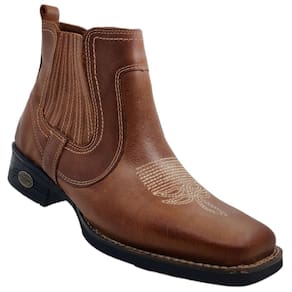 Botina Country Masculina Texana em Couro com Costura Bico Quadrado Cano Baixo Western Oliveira 10022 - 39 - Marrom Cacau