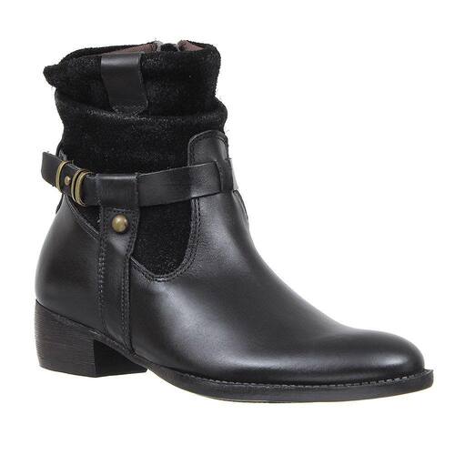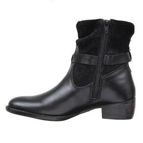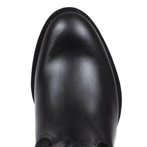 Botina feminina Cow Way fabricada em couro na cor Preta, possui cano com zíper lateral com detalhe em rebite, bico redondo e solado de borracha.