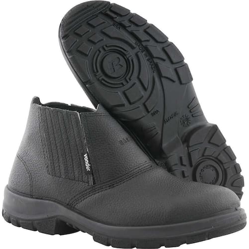 Marca: VonderConteúdo da embalagem:1 Par de botinas.: legal: 90 diasDestaques e diferenciais:Calçado de segurança tipo botina com fechamento em elástico lateral, confeccionado em couro curtido ao cromo. Possui palmilha de montagem em material sintético fixada pelo sistema strobel e solado de poliuretano bidensidade, que proporciona maior conforto. Conta com biqueira de composite, um composto formado por fibra de carbono, vidro e poliéster especial, sem componentes metálicos, um material que, aparentemente, lembra o plástico. Resistente contra impacto e ao óleo combustível, mais leve que biqueira de aço.Aplicações e dicas de uso:Indicada para proteção dos pés contra agentes abrasivos e escoriantes, e contra impactos de quedas de objetos sobre os artelhos.Detalhes Técnicos:Número do certificado de aprovação - CA: 42882 Modelo: BEV 0144 Material do calçado: Raspa Cor: Preta Número do calçado: 44 Acabamento interno forração/forro tipo/composição : Sem forro Tipo de fechamento do calçado: Com elástico Material do solado: Poliuretano Tipo de solado da botina: Bidensidade Tipo de biqueira: Biqueira de composite Tipo de palmilha: Palmilha de material sintético Massa aproximada peso kg : 0,620 kg Marca: Não Informado