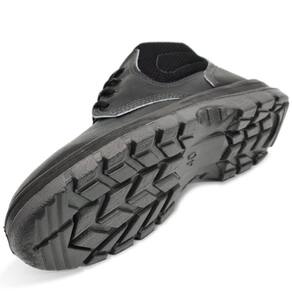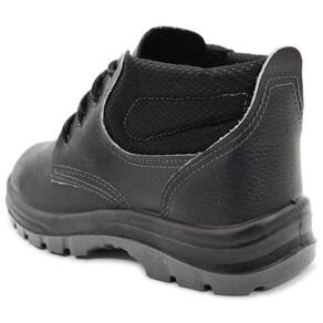 diretamente no cabedal, sendo a 1° camada (entressola) mais macia e leve proporcionando maior conforto, e a 2° camada é a mais resistente a objetos cortantes, perfurantes e a abrasão. Solado com estabilizador, sistema antipronação, canais de escoamentos mais espaçados, ranhuras de aderência na região frontal e traseira e desenho plantar rebaixado. O modelo é ideal para trabalhos na área de construção civil, na industria, na petrolífera e serviços em geral, sendo confortável e protegendo contra riscos de impacto de natureza leve. Não utilizar em operações de combate a incêndio, agentes explosivos, agentes térmicos, áreas energizadas e onde ocorra queda de objetos sobre os artelhos.