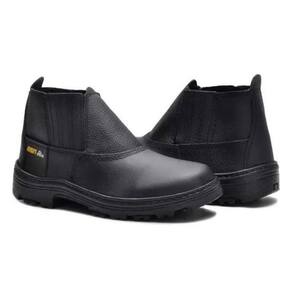 DESCRIÇÃO: - Botina de segurança em couro legitimo - Biqueira de PVC resistente a trabalhos pesados, trazendo segurança ao pé - Calçado ocupacional de uso profissional - Calçado forrado por dentro, com ajuste de elastico trazendo mais facilidade para vestir - Sola de borracha ante derrapante, costurada nas laterais trazendo uma maior durabilidade