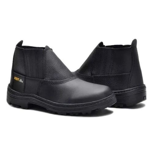 Botina de segurança epi elástico com CA em couro com biqueira solado macio preta