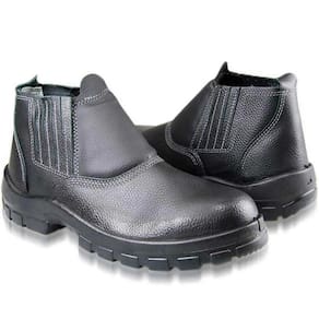 Descrição: Botina de Segurança, com elástico lateral recoberto, confeccionado em couro estampa relax, dorso acolchoado, forro interno na gáspea não tecido e forro do cano em sanitec dublado com manta de não tecido com tratamento antimicrobiano, bico plástico, palmilha de montagem não tecido, solado injeção direta MONODENSIDADE e sobrepalmilha antimicrobiana.