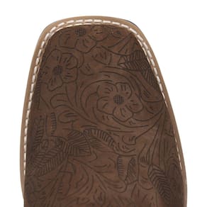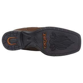 Uma Botina Feminina da marca Zebu, fabricada em couro de alta qualidade destacando a textura única do couro entalhado, possui cano curto com elástico lateral acolchoado no interior, bico quadrado, vira costurada e solado de borracha tratorado.