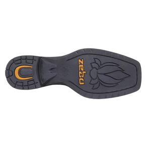 Botina feminina Zebu fabricada em couro na cor Marrom, possui cano curto com elásticos laterais, bico quadrado com florão costurado no peito do pé, vira costurada e solado de borracha.