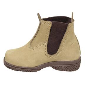Botina Infantil da marca Palma, fabricada em couro de alta qualidade na cor Bege, possui cano curto com elásticos laterais para perfeito e confortável calce, bico redondo, já sendo um padrão em calçados infantis, a peça é colada no solado de borracha.