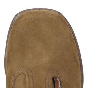 Botina Infantil da marca Palma, fabricada em couro de alta qualidade na cor Marrom, possui cano curto com elásticos laterais para perfeito e confortável calce, bico redondo, já sendo um padrão em calçados infantis, a peça é colada no solado de borracha.