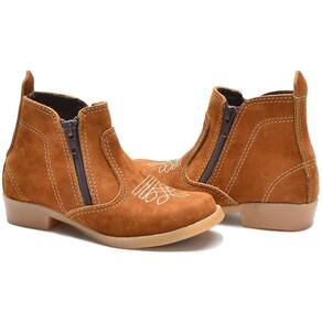 Botina Infantil Masculina Couro Calce Fácil Zíper Resistente - 21 - Marrom