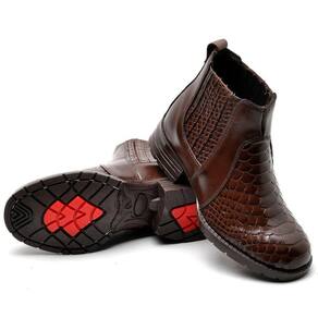 Botina Infantil Masculina Couro Confortável Elástico - 33 - Marrom