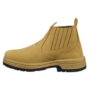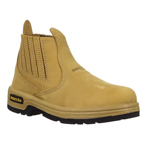 Uma Botina masculina da marca Bretão, esta fabricada em couro na cor Amarelo, possui cano curto com elásticos laterais, bico redondo e solado de borracha.