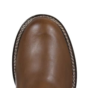Uma Botina masculina da marca Bretão, esta fabricada em couro na cor Marrom, possui cano curto com elásticos laterais, bico redondo e solado de borracha com vira dupla costurada.