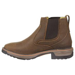 Uma Botina modelo Masculino da marca Zebu, fabricada em couro de alta qualidade destacando a textura única do couro bordado, possui cano curto com elásticos laterais acolchoado no interior, bico quadrado, vira colada e solado de borracha tratorado.