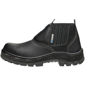 A botina é confeccionada em microfibra preta sem componentes metálicos (atende à NR?10), oferecendo proteção elétrica e mecânica em instalações de baixa tensão. Possui fechamento em elástico, dorso acolchoado, abas de calce, forração interna, palmilha higiênica antibacteriana, biqueira de composite leve e ultrarresistente e solado isolante em PU bidensidade.