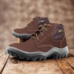 A Botina Nobuck Café Com Biqueira Plástica N41 4855AC/CF/EL/NB - Safetline, é inspirada no lince - um dos felinos mais ágeis, atentos e versáteis da natureza - esta botina foi projetada para oferecer conforto, resistência e desempenho. Fabricada em vaqueta nobuck na cor café, utiliza a parte da flor do couro, considerada a mais nobre. Esse couro passa por um processo de lixamento que confere um acabamento opaco, aveludado e suave ao toque, com pelos curtos praticamente imperceptíveis. Esse modelo conta com tratamento hidrofugado e hidro-repelente, oferecendo resistência moderada à água. No entanto, não é recomendada para atividades que envolvam exposição intensa ou contínua à umidade.