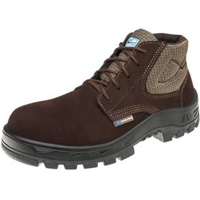 Especificações técnicas -Couro nobuck na cor café -Colarinho e lingueta semifole soft acolchoados -Fechamento com cadarço marrom -Biqueira de composite -Solado isolante em PU bidensidade com absorção de impacto -Palmilha com tratamento antibacteriano
