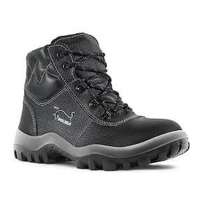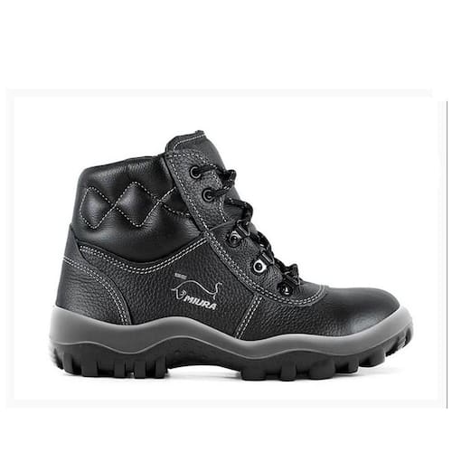 Botina Miura Preta (Gran Luxo) é confeccionada com vaqueta nobuck na cor preta com tratamento hidrofugado e hidrorrepelente. É forrada com SafetDry sem emendas, para oferecer conforto térmico, absorção de suor e alta performance, e pode ser fabricada com biqueira plástica, de aço ou composite. CONFORTO Sua lingueta é fole (o que evita a entrada de resíduos e detritos) em vaqueta e com acolchoamento em espuma, para proporcionar o máximo de conforto. Possui cadarço (atacador) redondo em poliéster, na cor preta, com ponteira resinada. DURABILIDADE O cano possui colarinho em vaqueta soft com três gomos acolchoados com detalhe de brasão, o que proporciona conforto e resistência antitorção. O forro da gáspea é em não tecido de alta resistência, e as emendas internas do calçado são de topo, ou seja, sem saliências, o que oferece grande conforto. BOTINA MIURA PRETA A palmilha de montagem é costurada no sistema strobel, e a palmilha de conforto é antibacteriana, termoconformada e removível. O cabedal tem costuras simples e duplas feitas com linhas de nylon de alta tenacidade.