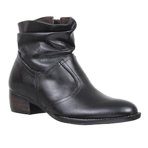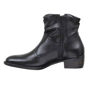 Botina feminina Cow Way fabricada em couro na cor Preta, possui cano curto com zíper lateral, bico redondo e solado de borracha.