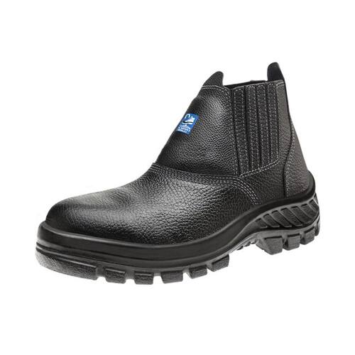 Bota de couro na cor preta, ideal para profissionais que atuam nas áreas de construção civil, áreas de produção e serviços gerais. Tem biqueira de composite leve e ultrarresistente, abas que auxiliam o calce, dorço acolchoado, forração interna, além de fechamento com elástico nas laterais. O calçado conta também com solado em PU bidensidade injetado diretamente no cabedal e acompanha palmilha de montagem em poliéster resinado com proteção antibacteriana.