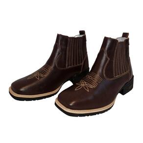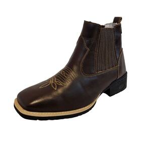 Botina Texana Bordada Em Couro Masculina Solado Borracha Costura Manual Puxador Traseiro Premium - 37 - Marrom