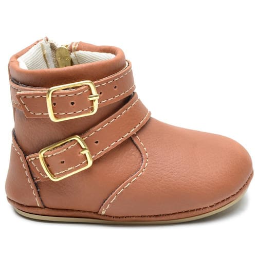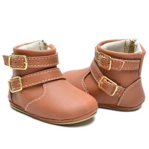 Botinha Feminina Infantil Bebê Tiras Fivelas Confortável - 20 - Marrom Chocolate