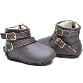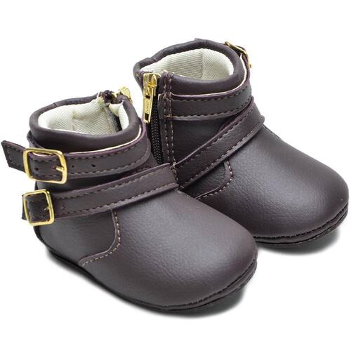 Botinha Feminina Infantil Bebê Tiras Fivelas Confortável - 17 - Marrom