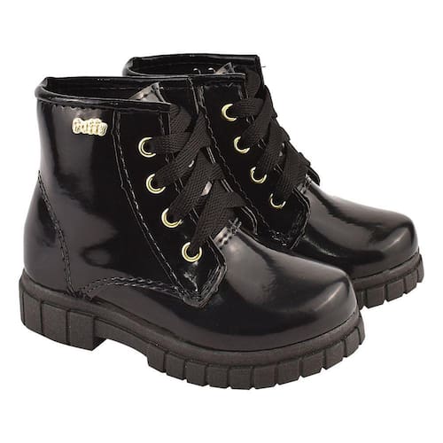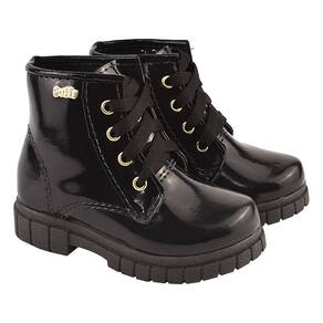 Coturno Bota Infantil Verniz Preto Cano Curto confortável e estiloso, traz um toque especial para o look das meninas.