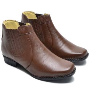 Botinha Masculina Bota Couro Cano Curto Costurada Lisa - 38 - Marrom Cacau