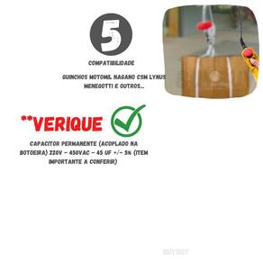 Capacitor permanente acoplado na botoeira 220v - 450vac - 45 uf +/- 5% item importante a conferir - pode ter diferença de 5% para mais ou para menos