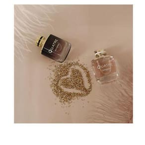Boucheron Quatre Pour Femme é um perfume feminino floral, icônico e exuberante. A fragrância foi inspirada na famosa e luxuosa coleção de anéis da casa.Boucheron Quatre Pour Femme é moderno e vai agradar as mulheres jovens e de espírito livre. Com um delicioso aroma que mistura notas frutadas e lenhosas, sua fragrância é única.O frasco de Boucheron Quatre Pour Femme foi inspirado no icônico anel Quatre, enquanto a parte superior possui cores alusivas ao luxo, como o ouro amarelo.Adicione sofisticação e atitude ao look e abuse do perfume em eventos diurnos. Sinta-se poderosa, naturalmente sedutora e eternamente jovem.CaracterísticasQuatre Pour Femme Boucheron Eau de ParfumPirâmide OlfativaTopo: Toranja, Limão siciliano, Laranja e Tangerina. Corpo: Maçã, Jasmin, Pêssego, Rosa e Morango. Fundo: Caramelo, Baunilha, Almíscar Branco e cedro.OcasiãoSinta-se mais poderosa, jovem e sedutora com essa fragrância em eventos diurnos e sofisticados.